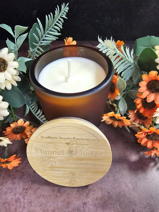 Flannel & Flicker is a warm, masculine scent that brings the cozy feel of a crackling fire to life. Bright notes of bergamot add a fresh, citrusy touch, while rich mahogany and soft musk create a grounding, woodsy base. Perfect for chilly nights, this candle wraps your space in a comforting, flannel-like warmth, making it ideal for creating a relaxed, inviting atmosphere. Light it and enjoy the balance of rugged charm and soothing serenity.