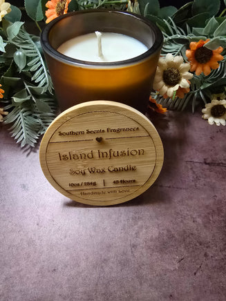 Transport yourself to a sun-drenched paradise with Island Infusion! This tropical escape blends the lush aroma of island flowers—jasmine, plumeria, and hibiscus—woven with hints of juicy tropical fruit. Shimmering green fern adds a fresh, breezy touch, while driftwood and soft musk create a warm, lingering finish. Light it up and let the vibrant, floral embrace of the islands fill your space!