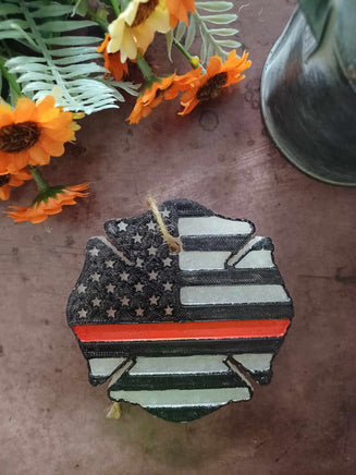 Fire Badge American Flag Thin Red Line Freshie